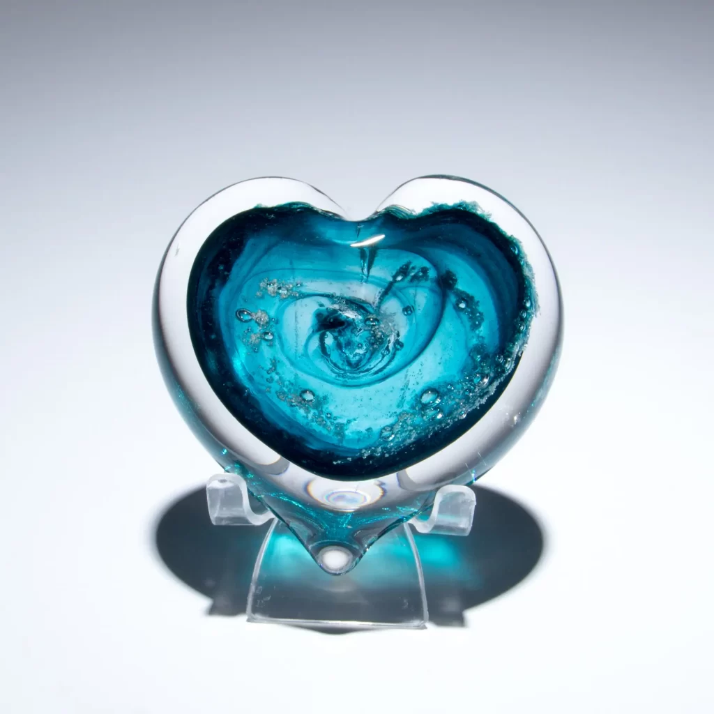 From paperweights, marbles, and solid sculpted hearts to colorful dog bones and sleeping kitties, we offer a range of options to capture your cherished memories in a respectful and comforting way. Our experienced glass artists use only a trace of ash, carefully integrating it into the glass with the colors of your choice to create a unique memorial to your loved one.