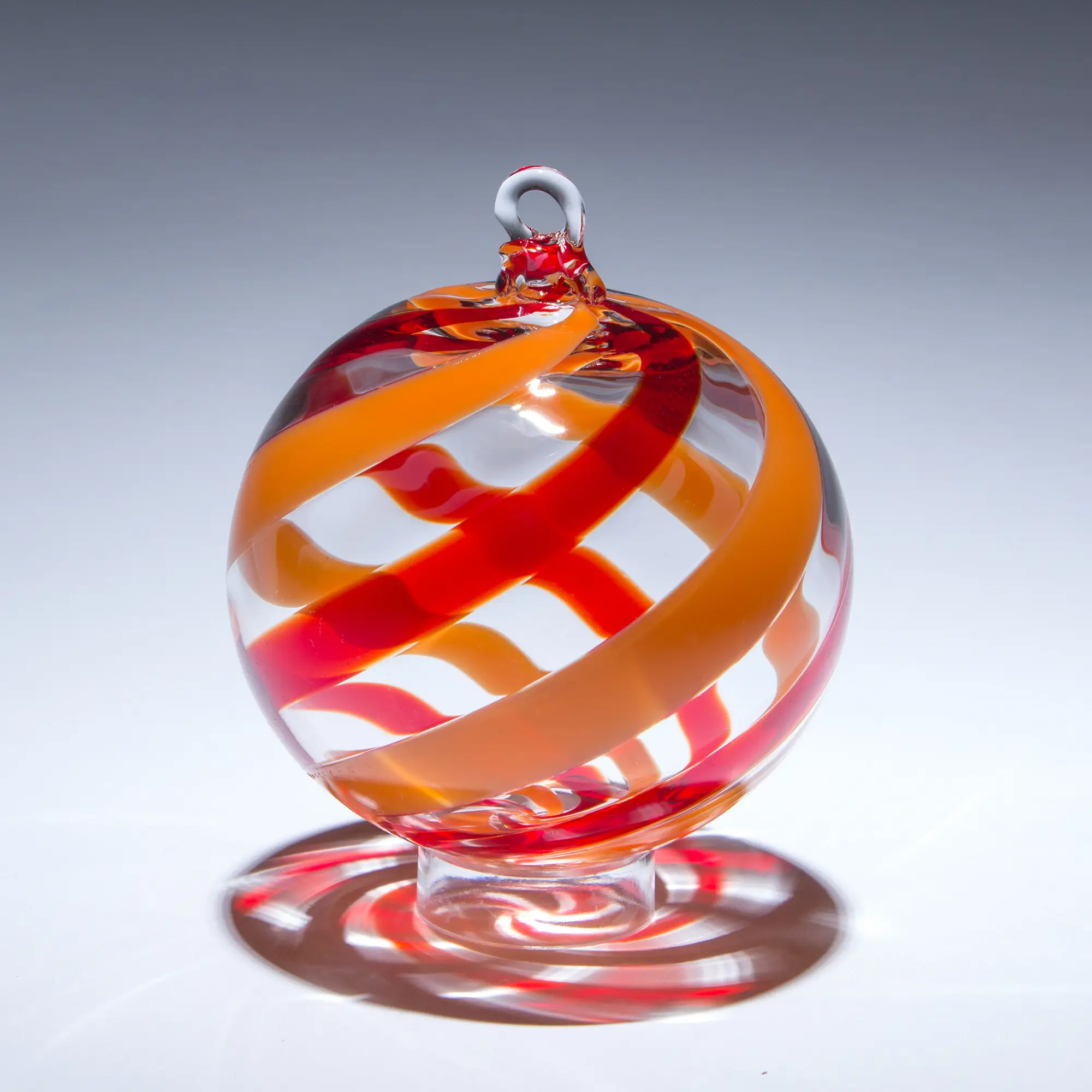 Gorgeous mouth-blown Dream Flurry glass ornaments. These unique collectibles make the perfect addition to any holiday display or sunny window. Available in a variety of vibrant colors, these ornaments have a beautiful swirling stripe, creating a stunning and show-stealing pattern.