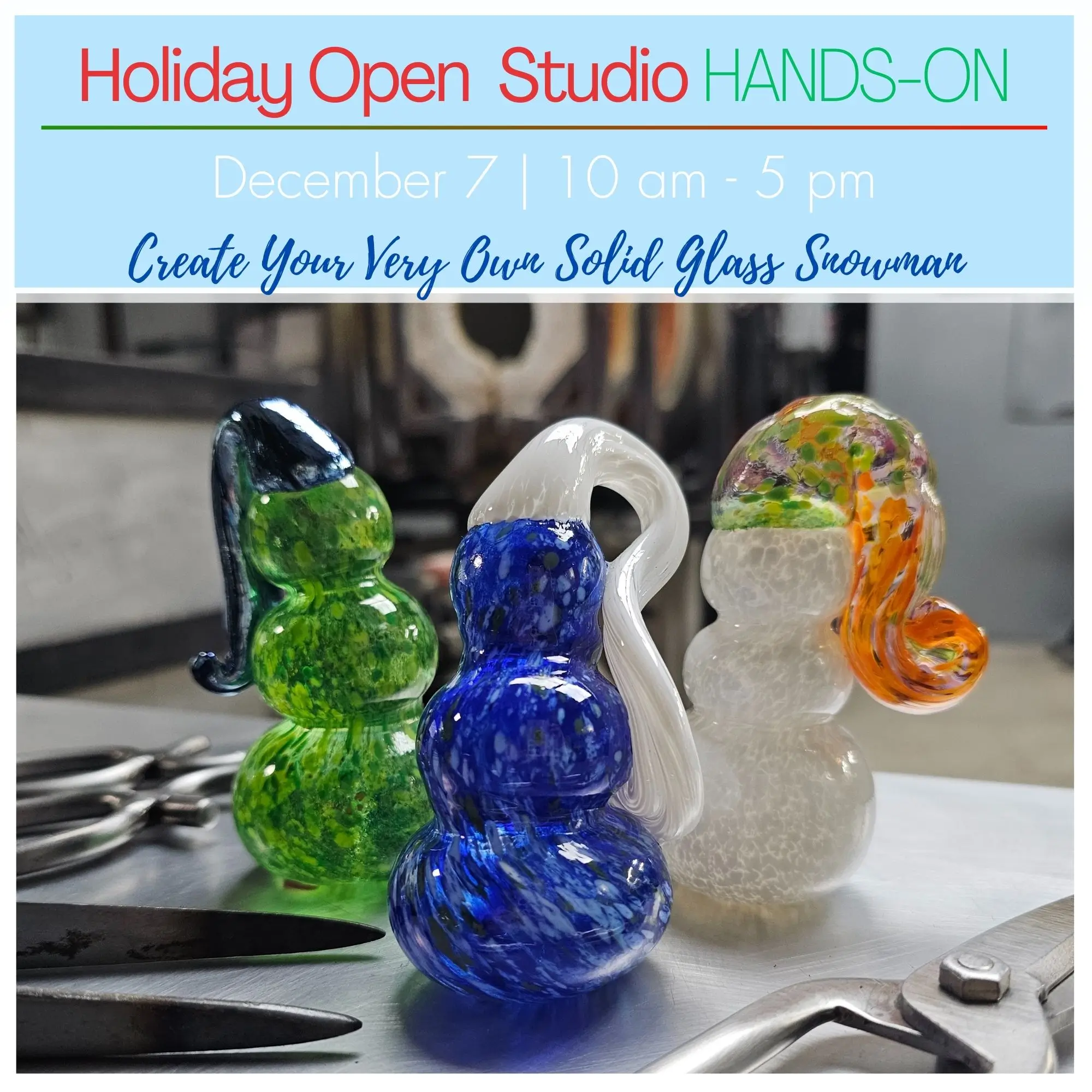 Winter is the perfect time to celebrate the fun of the season and to make your very own Frosty in our DIY Glass Snowman workshop, and he will never melt. Make your own adorable DIY Glass Snowman from 2000-degree molten glass with the help of our studio artists. After a demo of all the steps, tools, and safety guidelines you will hold the steel rod, turn the glass, and use the tools while sitting at the glass making bench. So much fun, and like nothing you have ever done before! Watch the glass turn from liquid to solid right before your eyes. Once finished your piece will cool for over 24 hours and be engraved with an inscription of your choice. Ready for you to pick up the following week.